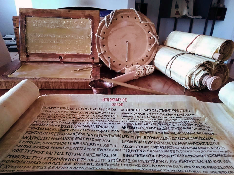 L’oplita era equipaggiato con una corazza di bronzo modellata (in seguito sostituita da una più leggera in lino), un elmo, una lancia di 2,5 metri, una spada (per quando la formazione si rompeva e la mischia si faceva serrata) e lo hoplon, il grande scudo circolare che dava il nome all’oplita.